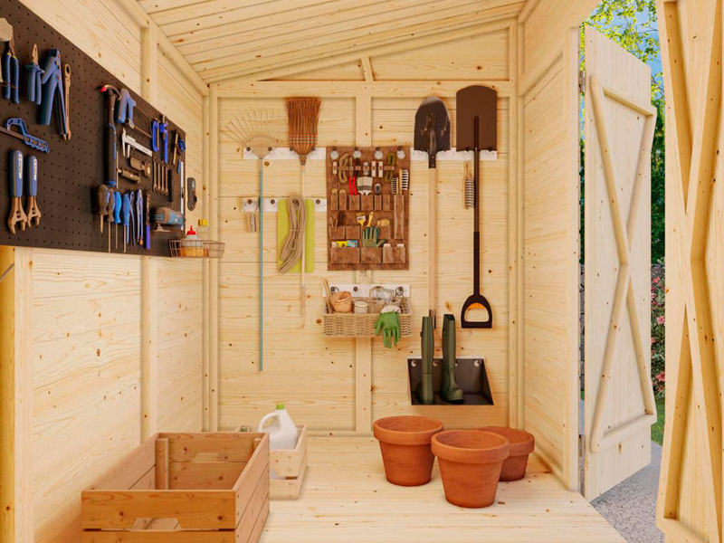 Construido con madera de abeto nórdico de alta calidad y paneles prefabricados de 16 mm, este modelo destaca por su estructura resistente, montaje sencillo y acabado natural, que se adapta fácilmente a cualquier jardín, patio o terraza.